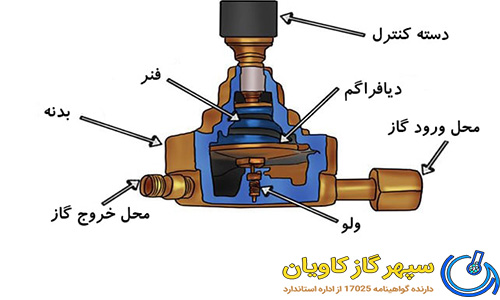 دیافراگم: یک غشای منعطف که بر اساس تغییرات فشار، موقعیت خود را تغییر میدهد و جریان گاز را تنظیم میکند.
